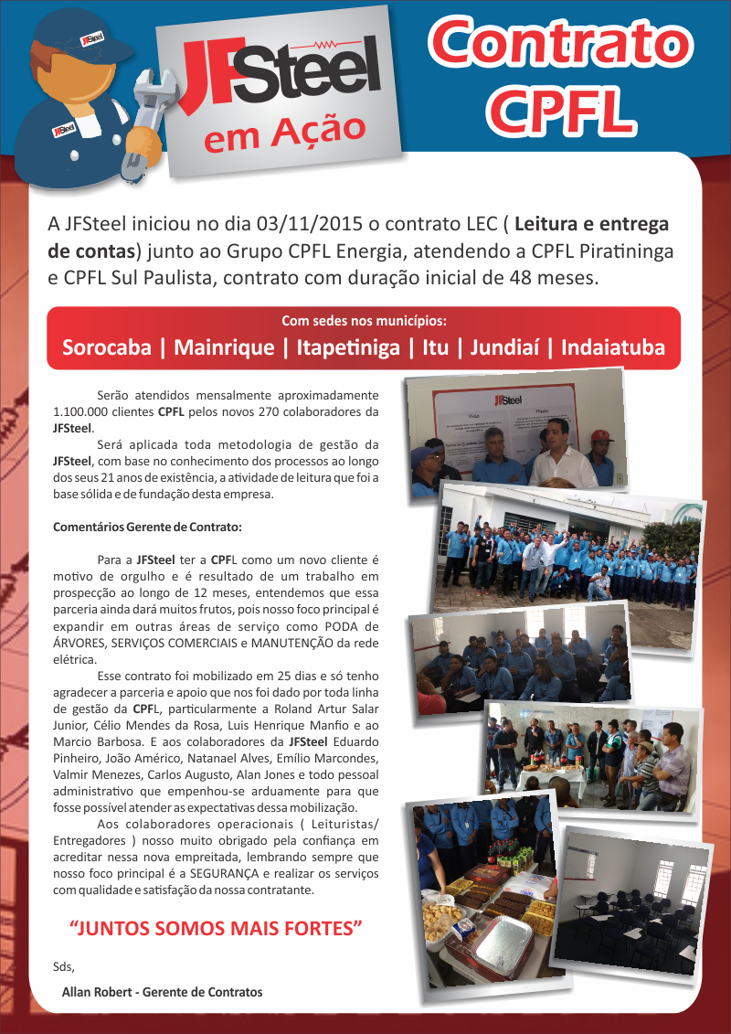 Jfsteel, fecha novo contrato com a CPFL Energia